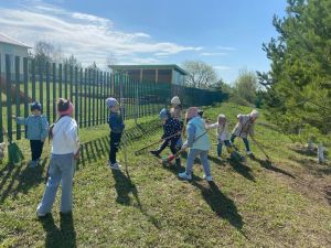 Воспитатели Ташкичинского детского сада вместе с детьми убрались на территории детского сада